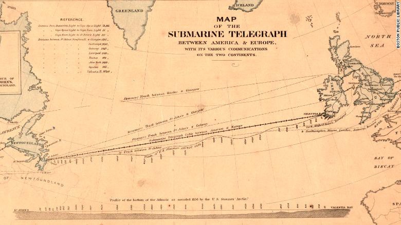 Tuyến cáp điện tín đầu tiên nối giữa châu Âu và Bắc Mỹ hoàn thành vào năm 1858. Ảnh: CNN.
