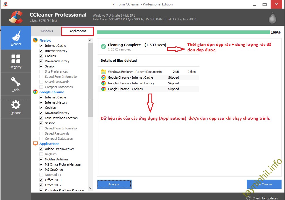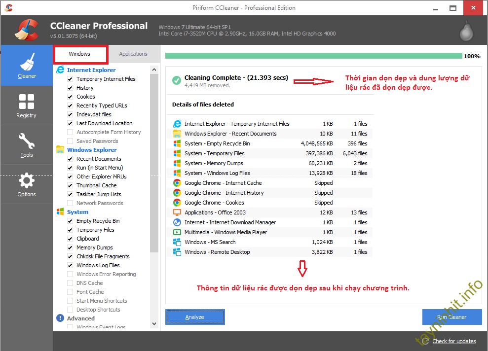 2) Sử dụng CCLeaner để dọn dẹp rác và tăng tốc cho máy tính