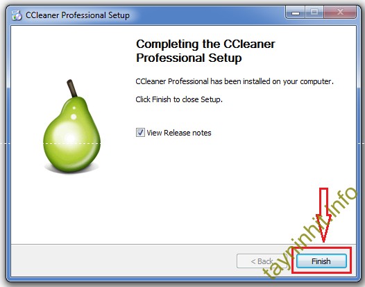 Tới đây là bước cài đặt phần mềm CCleaner vào máy tính đã hoàn thành.