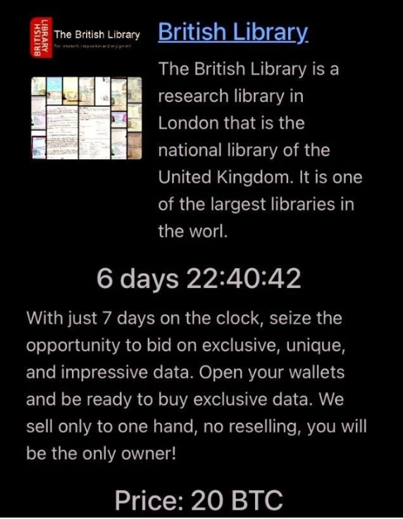 Tháng 10/2023, một cuộc tấn công đánh sập website Thư viện Quốc gia Vương quốc Anh. Rhysida, nhóm tin tặc đứng sau vụ tấn công còn đánh cắp dữ liệu người dùng, đe dọa bán trên mạng nếu không trả tiền chuộc.