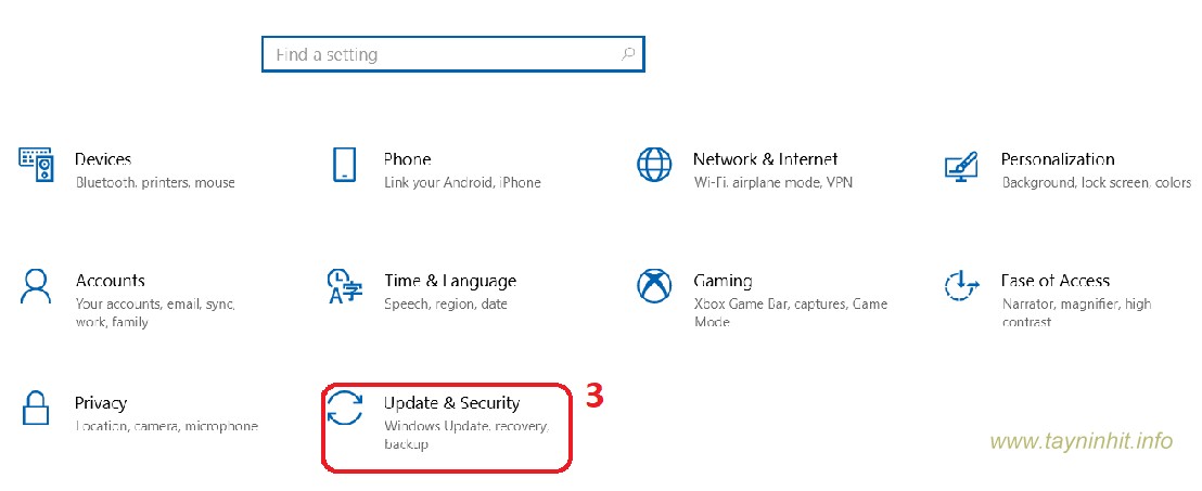 - Bước 2: Trên giao diện Settings, bạn click chọn Update & security.