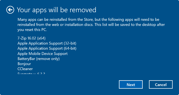 - Tất cả các ứng dụng, chương trình cũng như driver mà bạn cài đặt cũng sẽ bị gỡ bỏ.