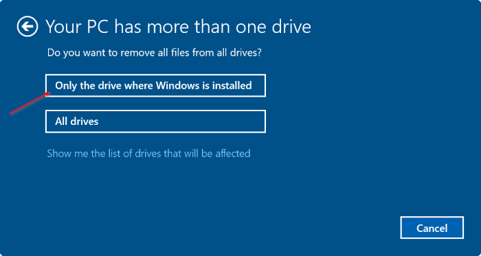 - Bước 6: Nếu máy tính của bạn có nhiều hơn 2 ổ, bạn sẽ nhìn thấy trên màn hình Your PC has more than one drive có 2 tùy chọn là: