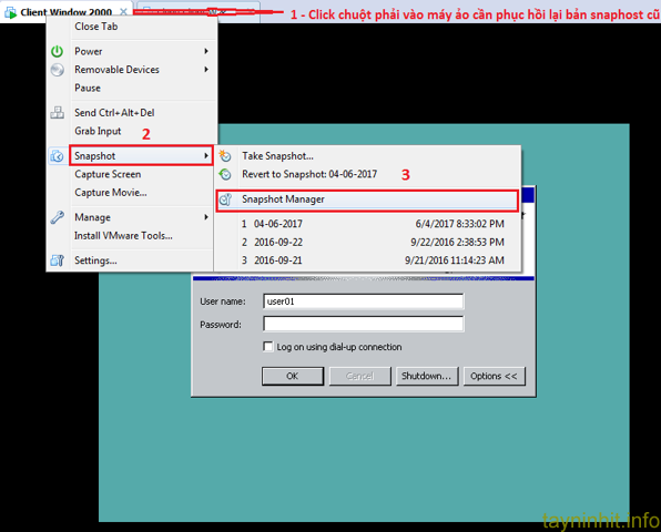 2. Phục hồi (Revert) máy ảo đã sao lưu