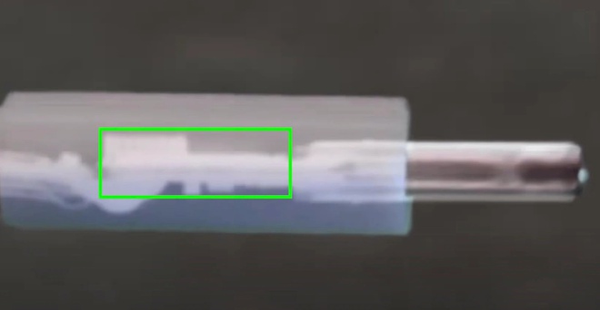 Ảnh chụp con chip bên trong sợi cáp Lightning giả mạo. Ảnh: MG.