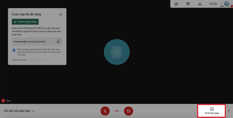 - Bước 6: Chọn Trình bày ngay để bắt đầu buổi học, họp online.