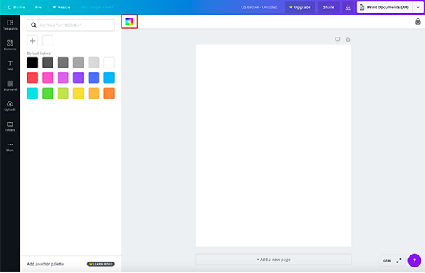 Tất cả các mẫu thiết kế của Canva bắt đầu với một trang trắng. Nếu bạn muốn thay đổi màu, bấm vào “Background color” bên góc trái màn hình. Bạn có thể dễ dàng chọn màu sắc mà bạn muốn làm màu nền cho CV bạn.