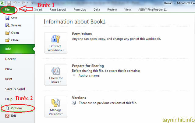 - Bước 1: Click vào file -> Options