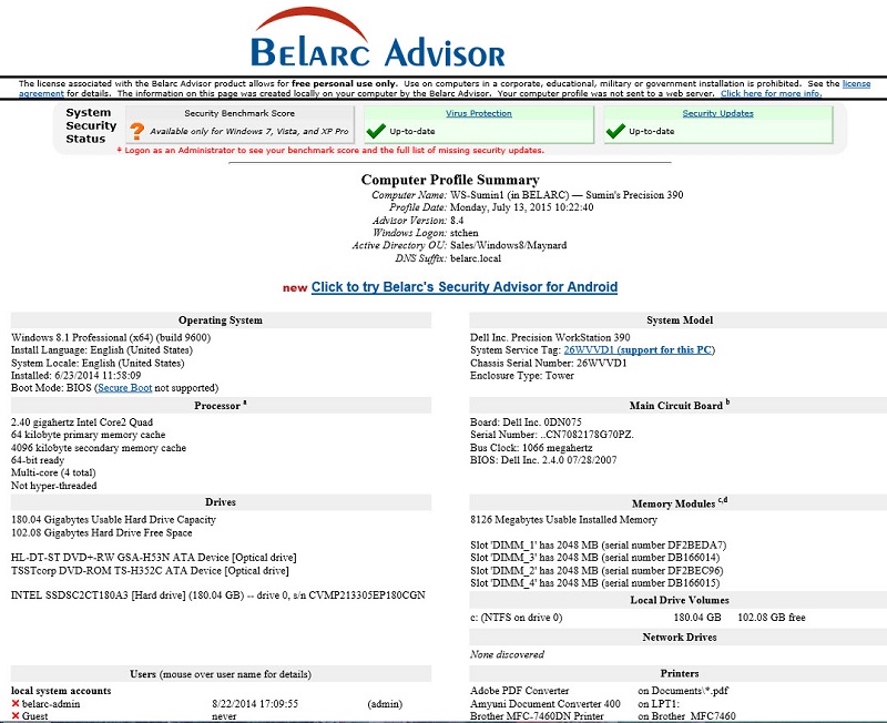 5. Belarc Advisor - Kiểm tra, sửa lỗi hệ thống