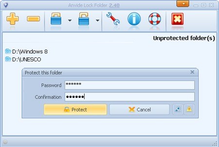 Anvide Lock Folder là phần mềm bảo vệ tập tin thư mục đáng tin cậy, bạn có thể đặt một hoặc nhiều mật khẩu cho các dữ liệu quan trọng. Phần mềm sẽ giúp bạn tránh khỏi tình trạng vô tình bấm vào những tài liệu quan trọng hoặc tránh khỏi trường hợp bị người lạ xâm nhập hoặc đánh cắp.