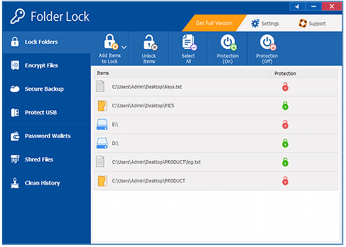 - Khóa một hoặc nhiều thư mục nhanh chóng.