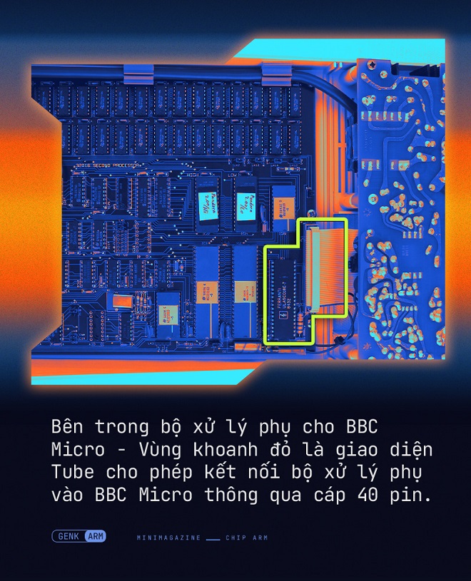 Để đáp ứng yêu cầu về hiệu năng, Acorn đã phát triển nên giao diện mở rộng Tube, giúp BBC Micro kết nối với một CPU phụ, hay còn gọi là bộ đồng xử lý. CPU phụ này sẽ chạy các phần mềm của người dùng trong khi CPU chính trên BBC Micro chỉ đóng vai trò quản lý thiết bị nhập xuất, như màn hình, bàn phím và bộ nhớ lưu trữ. Điều này tăng đáng kể tốc độ xử lý của cỗ máy mà không phải sử dụng các con chip mới.