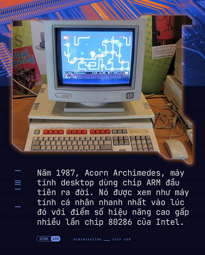 Vào lúc đó, máy tính đầu tiên dùng chip ARM này được xem là máy tính cá nhân nhanh nhất với điểm số hiệu năng cao gấp nhiều lần so với chip 80286 của Intel.