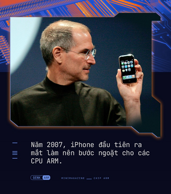 Đến năm 2007, lịch sử của ARM bước sang trang mới khi chiếc iPhone đầu tiên ra mắt với CPU dùng nhân ARM11. Từ lúc này, các CPU ARM trở thành lựa chọn mặc định cho smartphone, bất kể nó đến từ Apple hay bất kỳ hãng nào khác.