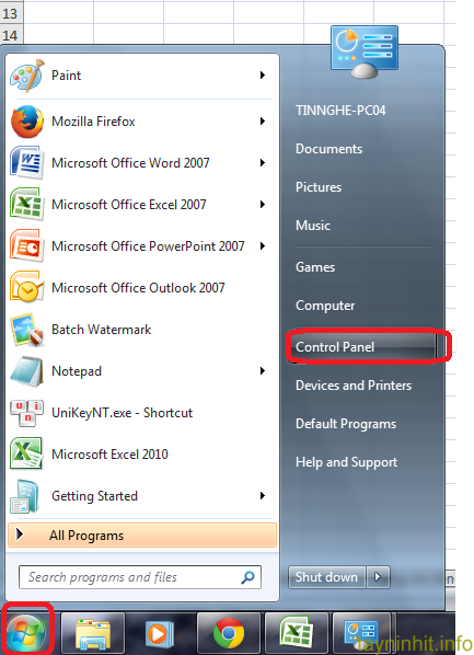 - Bước 1: Bạn thiết lập lại định dạng ngày tháng cho toàn hệ thống bằng cách Start -> Settings -> Control Panel -> chọn clock, language and Region và tiến hành thiết lập như hình bên dưới.