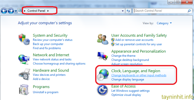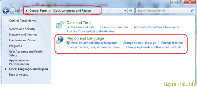 Cửa sổ clock, language and Region hiện ra chọn Region and Language