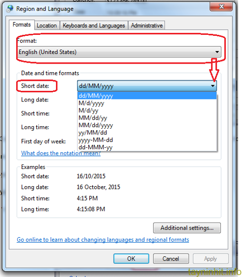 Mục Short date chọn ngày tháng theo định dạng mình mong muốn.
