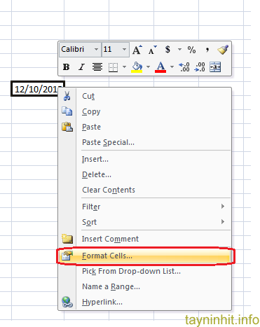 Bạn chọn một hoặc nhiều ô cần chỉnh lại định dạng ngày tháng trong Excel và nhấn chuột phải, sau đó chọn Format Cells...